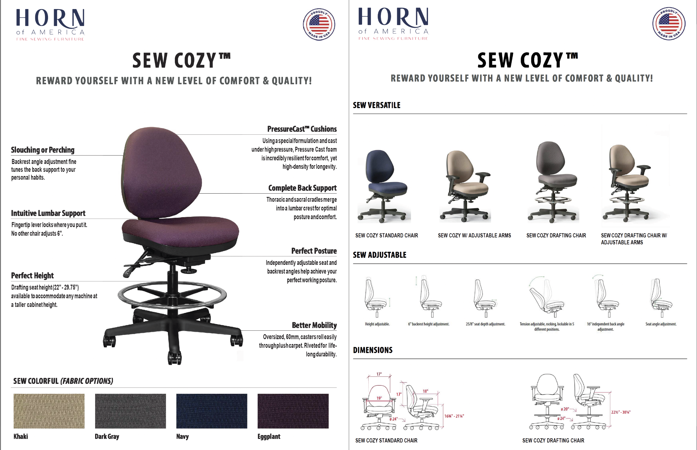 Built for taller sewing cabinets and cutting tables, the Sew Cozy™ Drafting Chair delivers the same premium comfort and ergonomic performance as the standard model— now with extended height for elevated workspaces.